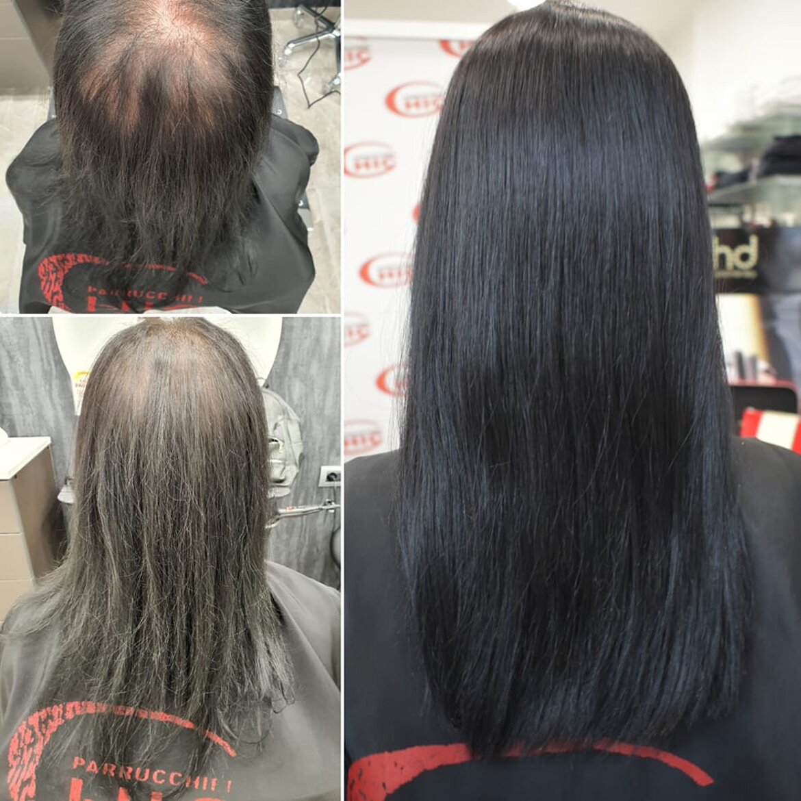 I capelli del/la cliente vengono rinforzati delicatamente, grazie all’impiego di capelli veri, selezionati con cura e della migliore qualità, che corrispondono ai primi per colore, lunghezza e struttura.